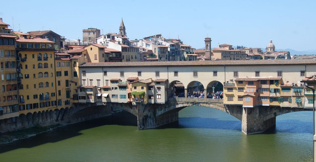 A Florencja moim zdaniem jest jednym z najpiękniejszych włoskich miast. Od razu trzeba tu powiedzieć, że nie jest to miasto ”na jeden raz”, bo nagromadzone tu zabytki i przepiękne kościoły wymagają żeby spędzić tutaj tydzień, dwa i więcej. Zachęcam do zwiedzania tego uroczego miasta na własnych nogach ponieważ większość zabytków znajduje się w centrum miasta. Ech, żeby pokazać wszystkie cudowności Florencji musiałbym mieć cały numer „KURIERA OSTROWSKIEGO” dla siebie a tak pokażę dla zachęty najpiękniejszy most tego miasta (PONTE VECCHIO) zwany mostem złotników. To tutaj od XIII wieku złotnicy i jubilerzy sprzedają swoje wyroby. To trzeba koniecznie zobaczyć!! No i jeszcze panorama tego przepięknego miasta.