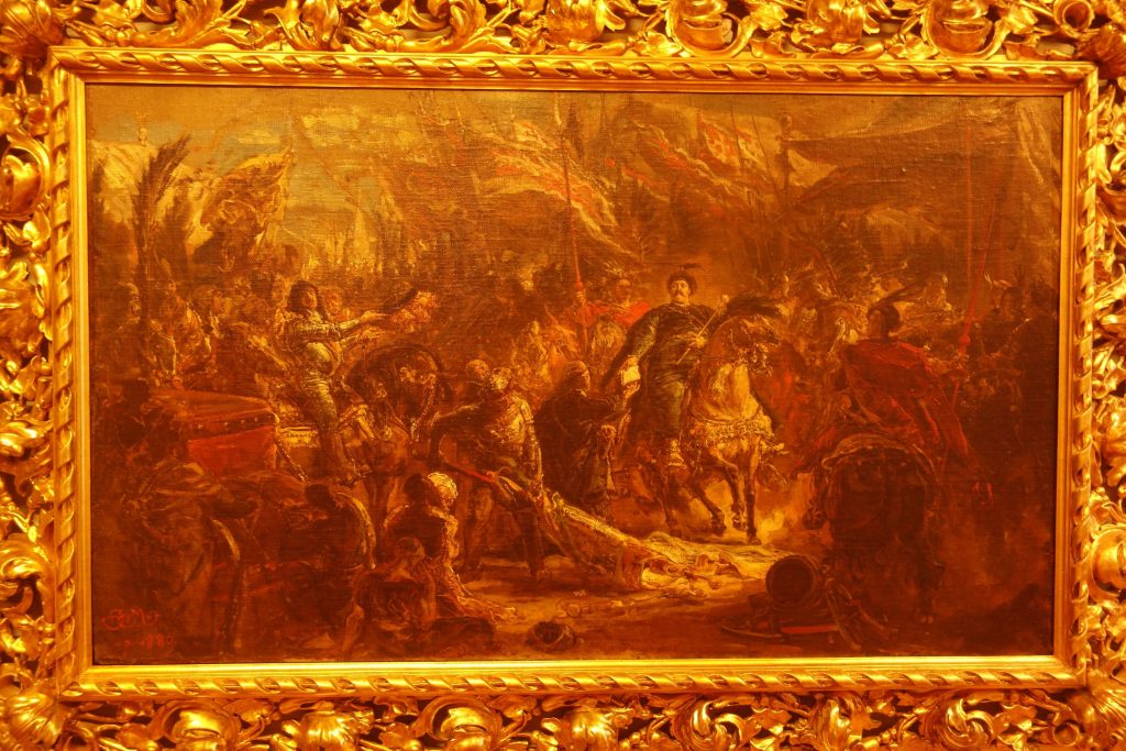 Dzisiaj gościmy w przepięknej kamienicy w Krakowie na ul. Floriańskiej 41, gdzie od 1896r jest tu muzeum. W tym domu urodził się mistrz Jan i możemy tu zobaczyć przedmioty, które gromadził przez całe swoje życie. Są tu dawne stroje i zbroje, broń palna i sieczna, stare naczynia i różne bibeloty które służyły mu przy malowaniu obrazów. W tej kamienicy na drugim piętrze jest pokój w którym urodził się nasz wielki malarz, a na piętrze trzecim zachowała się jego pracownia gdzie są jego pędzle, farby oraz palety których używał. W tych przepięknych wnętrzach można zobaczyć np. jeden z pierwszych obrazów olejnych Matejki „Stańczyk udający ból zębów” z 1856r. , szkic do obrazu „Jan III Sobieski wręcza kanonikowi Denhoffowi list do papieża” czy też portret syna na koniu. Ale ja przyjechałem tu podziwiać obraz pt. ”Carowie Szujscy na Sejmie Warszawskim” z 1892r. Wszyscy jednak ten obraz znamy jako „Hołd ruski” . Na obrazie widzimy jak Hetman Stanisław Żółkiewski wskazuje na carów Szujskich a oni „froterują” podłogę przed POLSKIM KRÓLEM Zygmuntem III Wazą. Możemy być dumni bo tylko nam Polakom udało się zdobyć Moskwę i to dwukrotnie!! W 1610r. i w 1812r wraz z Napoleonem. Piękne to były chwile. Aż mi się łza w oku zakręciła… Pomyślałem o biednym Matejce, który wielkim malarzem był ale i jemu, jak wielu innym wielkim ludziom zdarzył się życiowy błąd. Otóż poślubił kobietę, która była jego udręką i cierniem w sercu. Pani Teodora, jego wielka miłość (a miłość jak wszyscy wiemy jest ślepa) przysparzała mu wiele zgryzot. Cały Kraków wiedział, że terroryzowała męża i przepuszczała honoraria Matejki na bogate suknie i klejnoty. Wyjeżdżała samotnie „do wód” a on musiał zajmować się dziećmi i ciężko pracować by pokryć jej wydatki. Z roku na rok stawała się coraz bardziej despotyczna, zawistna i egoistyczna. Wszczynała swojemu biednemu mężowi awantury z błahych powodów i niszczyła jego przedmioty oraz obrazy. Trwało to wile lat aż zrozpaczony Matejko umieścił ją najpierw w szpitalu Św. Ducha tzw. „wariatkowie” a później na wsi gdzie oddawała się praktykom bardzo „nowoczesnym” – szprycowała się morfiną!